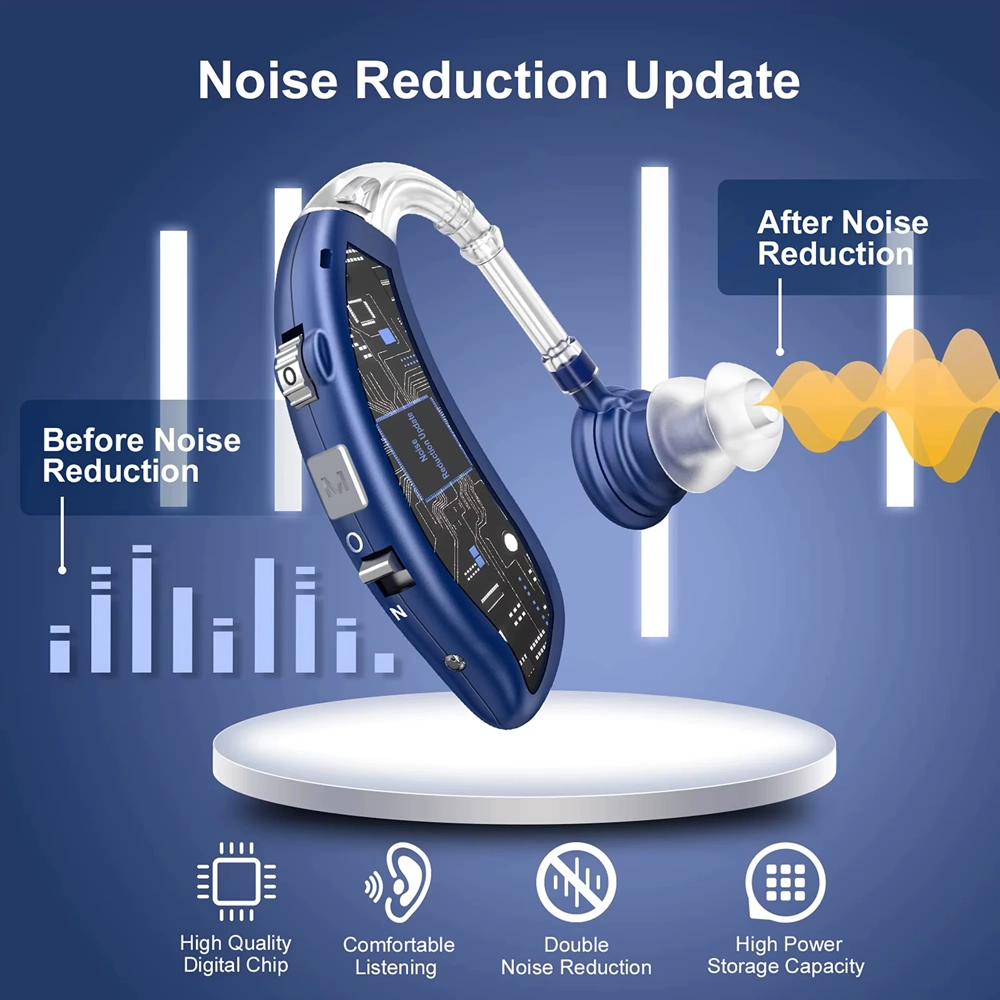 Aparelho Auditivo Digital Recarregável | Mini Amplificador de Som com Bluetooth | Cancelamento de Ruído Inteligente e Controle de Volume