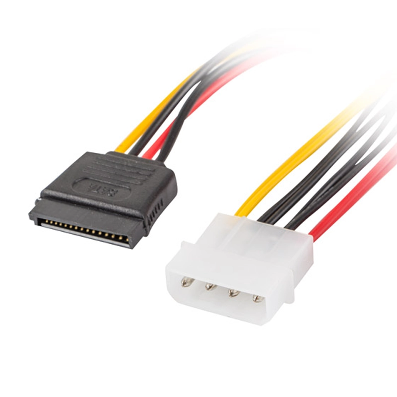 O Cabo Molex IDE de 4 Pin tipo D é convertido em dois plugues de alimentação SATA, para que a fonte de alimentação do computador sem plugue de alimentação SATA possa fornecer energia para dispositivos SATA; duas extremidades são plugues SATA 15 Pin e a outra extremidade é um grande terminal 4 Pin, que é usado para fontes de alimentação de disco rígido de computador.