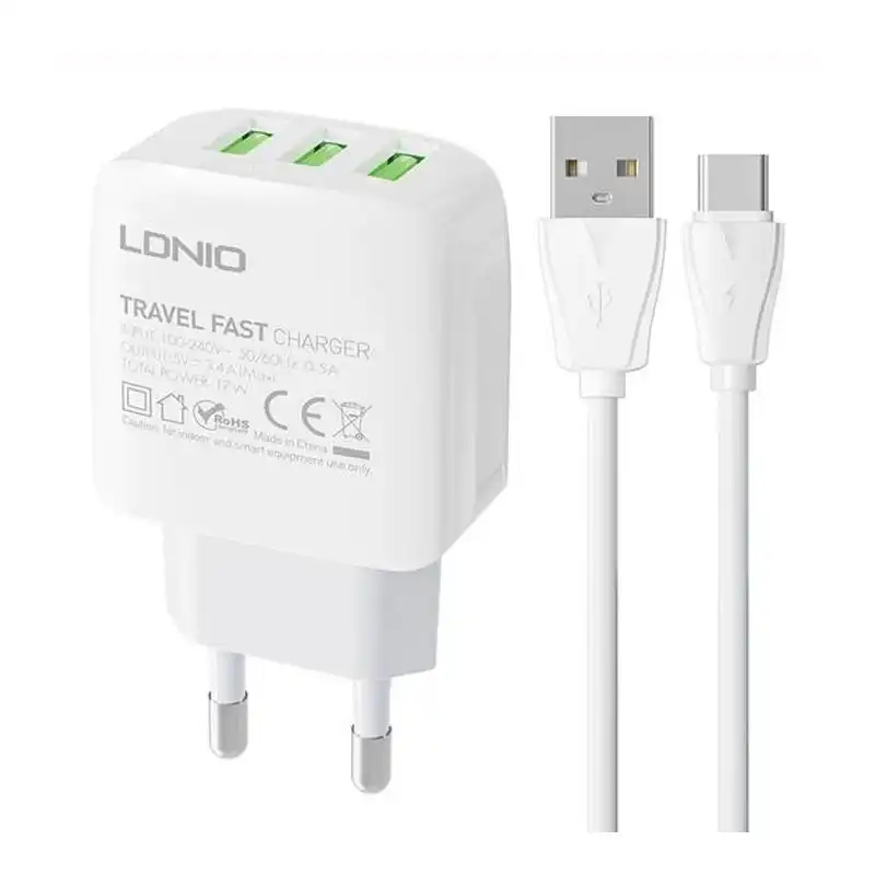 LDNIO A3312 EU Plug 3USB Fast Wall Charger