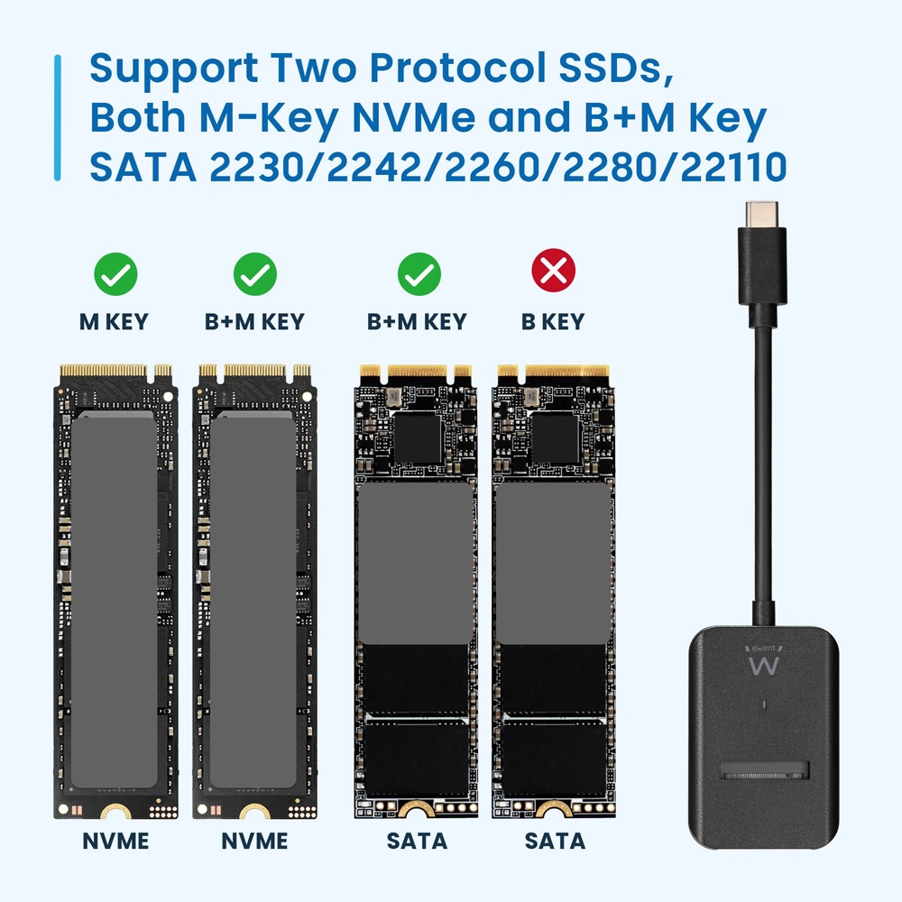 - Compatibilidade Dual Protocol: Suporta tanto SSDs M.2 NVMe (M-Key / B+M Key) como M.2 SATA (B+M Key).
