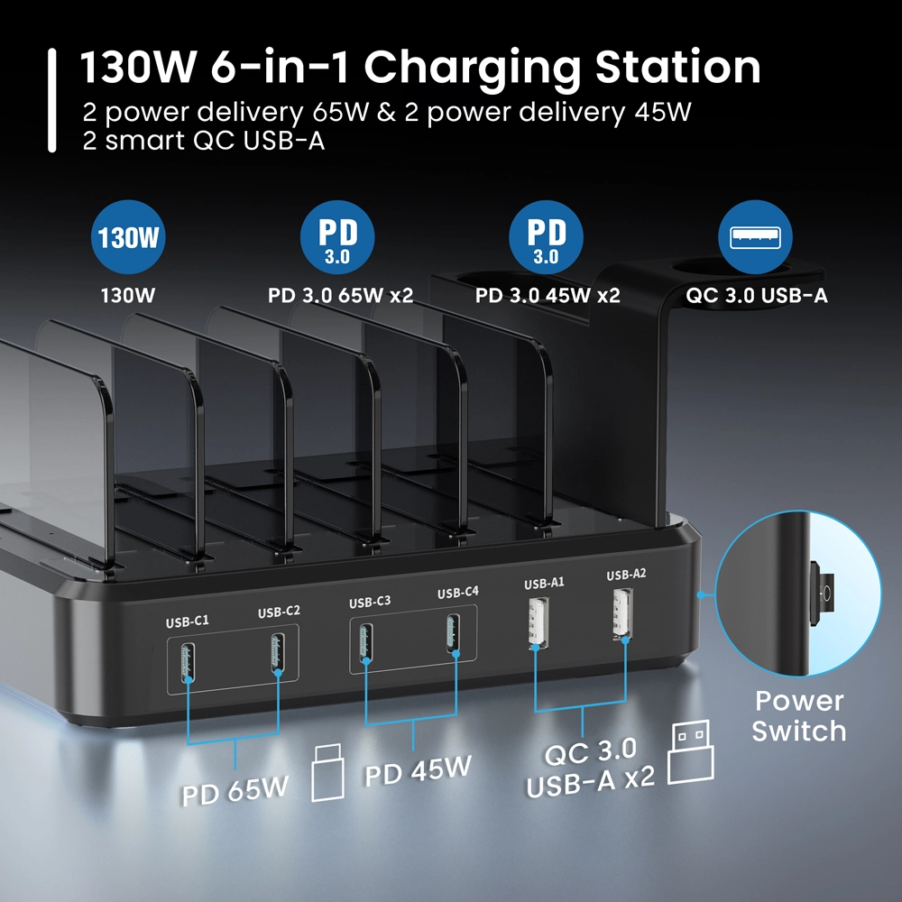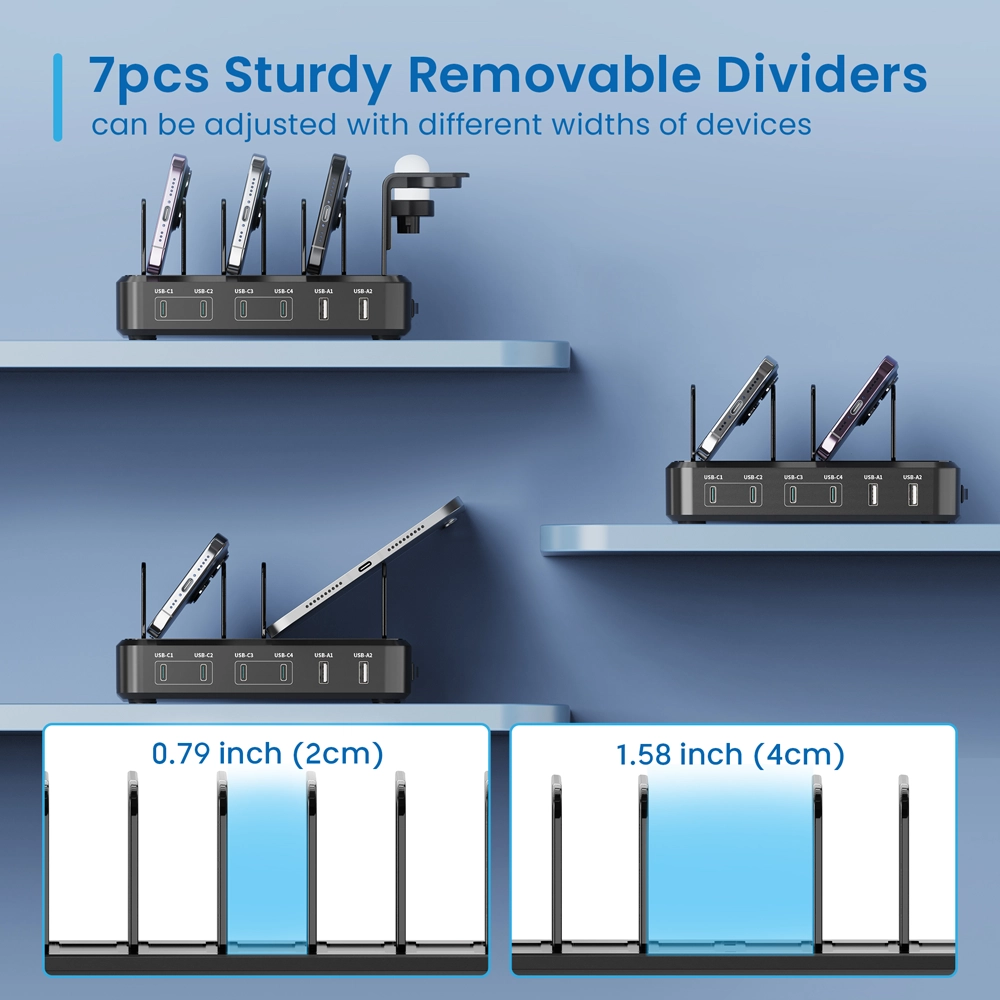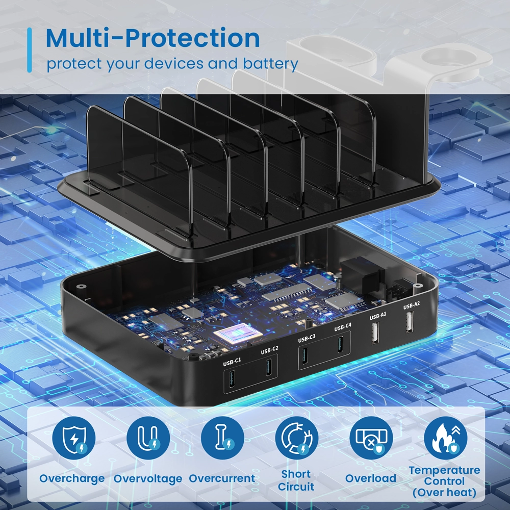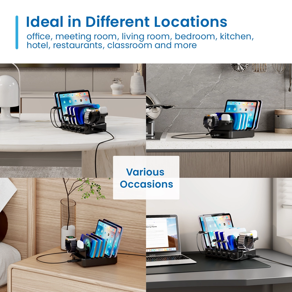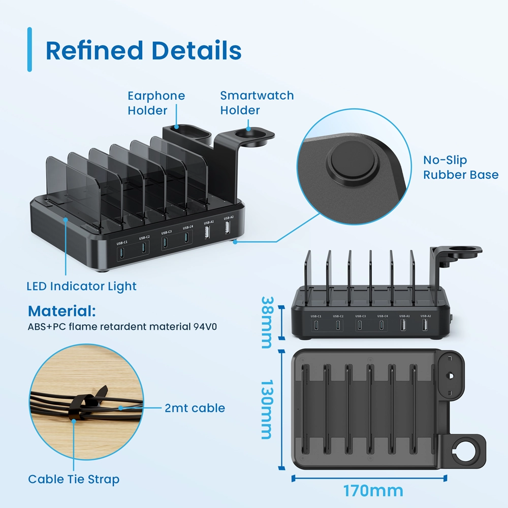 - Organização 6-em-1: 6 portas USB para eliminar a necessidade de múltiplos carregadores de parede.