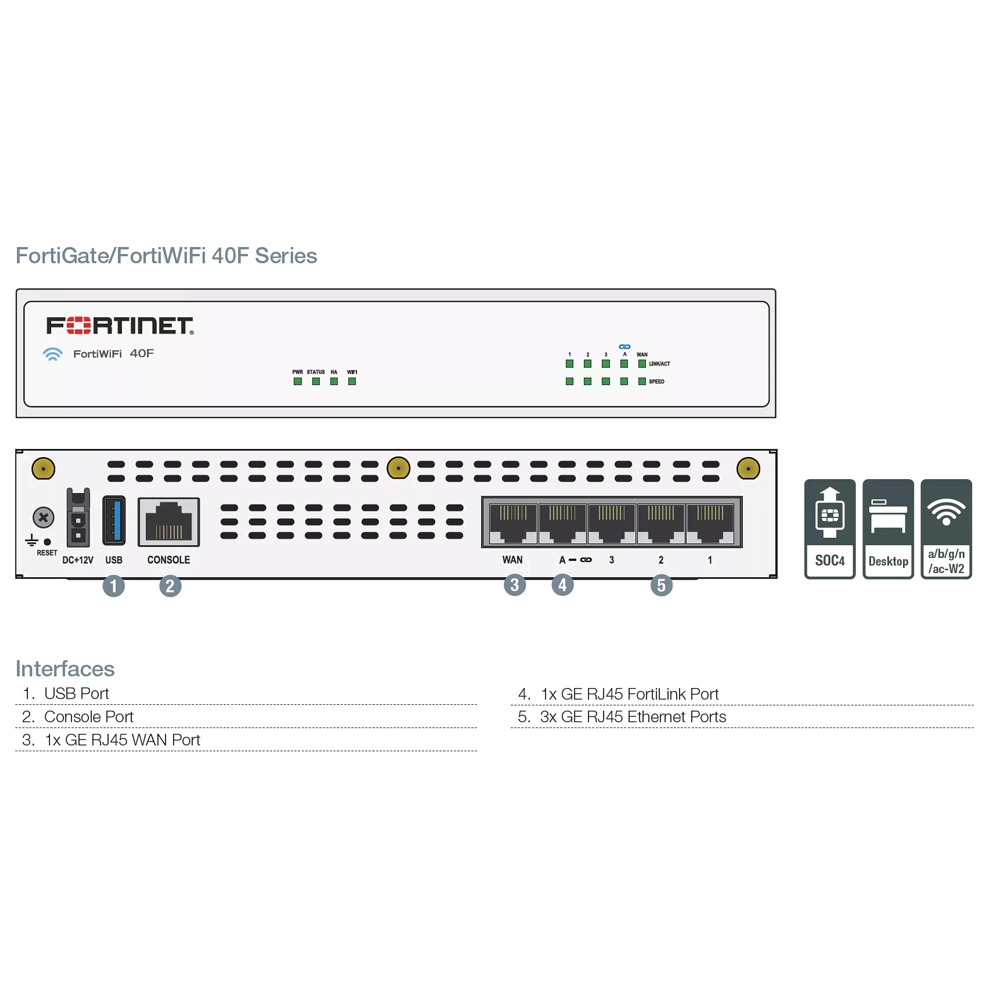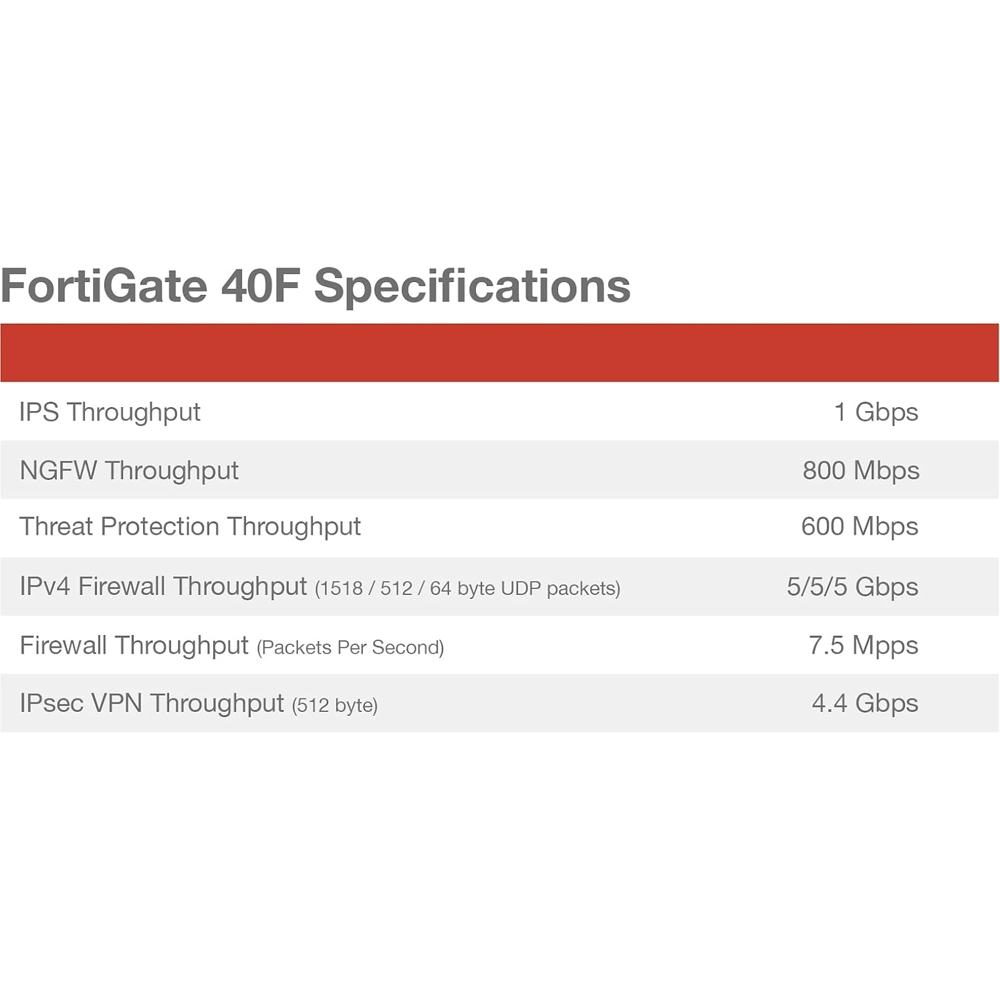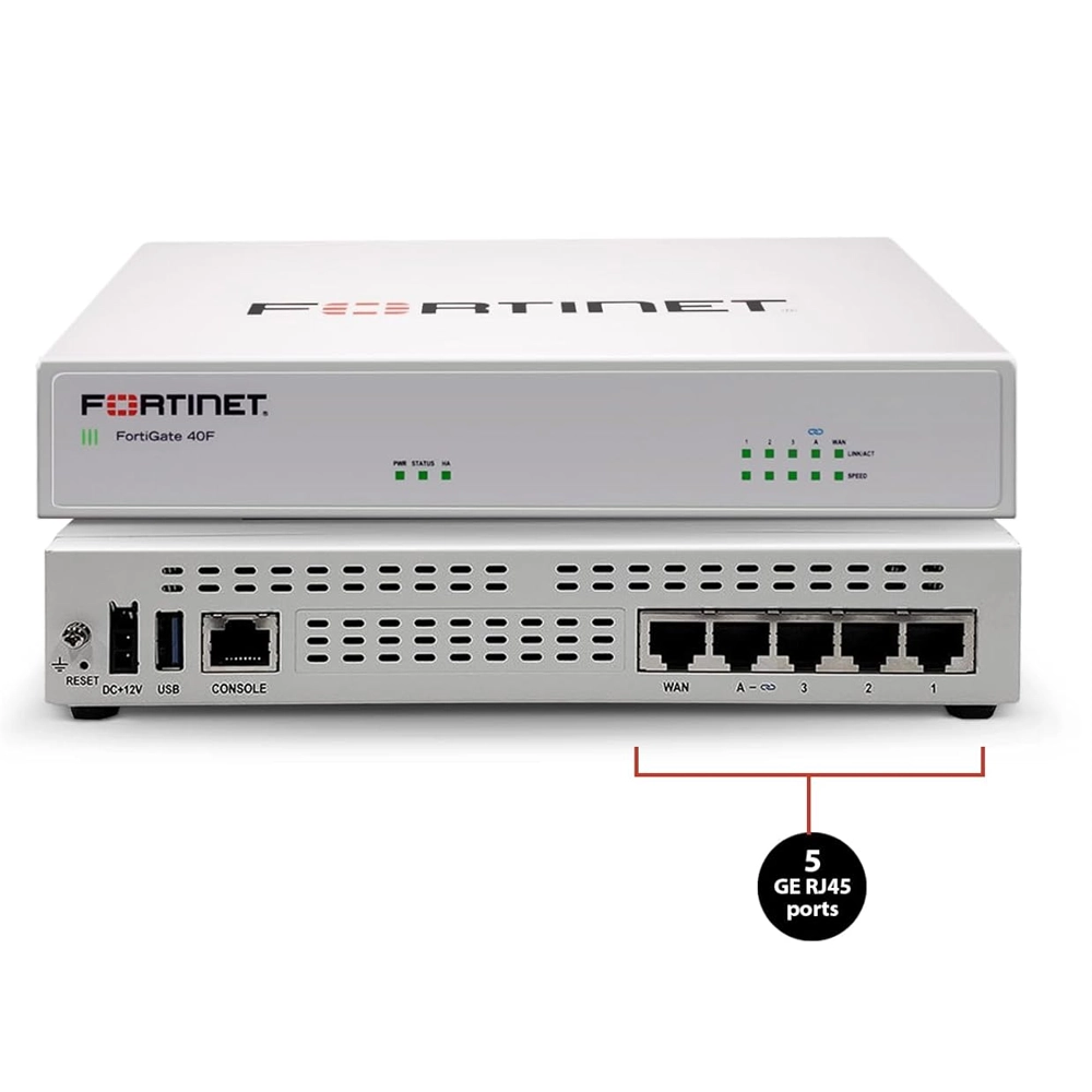 O Fortinet FortiGate FG-40F é um firewall de segurança de próxima geração (NGFW) compacto, mas poderoso, projetado para fornecer proteção de nível empresarial para pequenas e médias empresas (PMEs), filiais e home offices de alto desempenho. Integrando o poder do processador FortiSPU personalizado, o FG-40F oferece velocidades de firewall e UTM (Unified Threat Management) excecionais, tudo num formato de desktop silencioso.