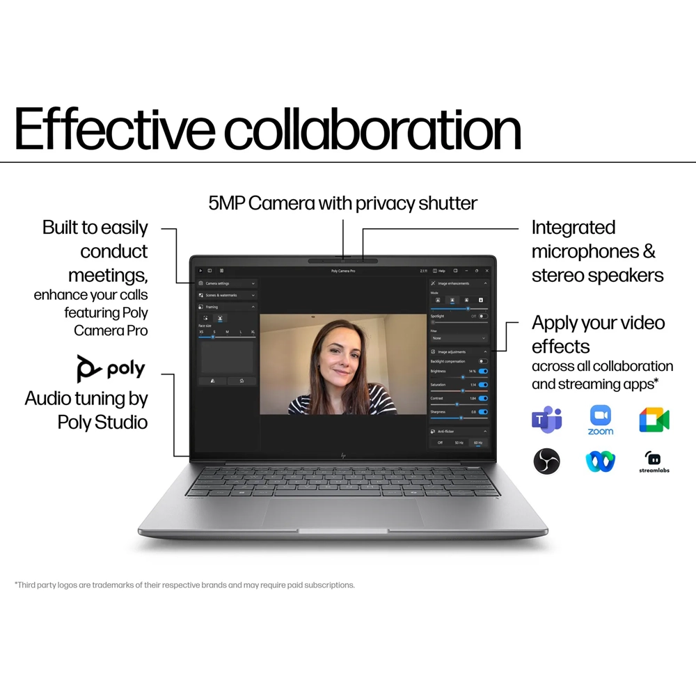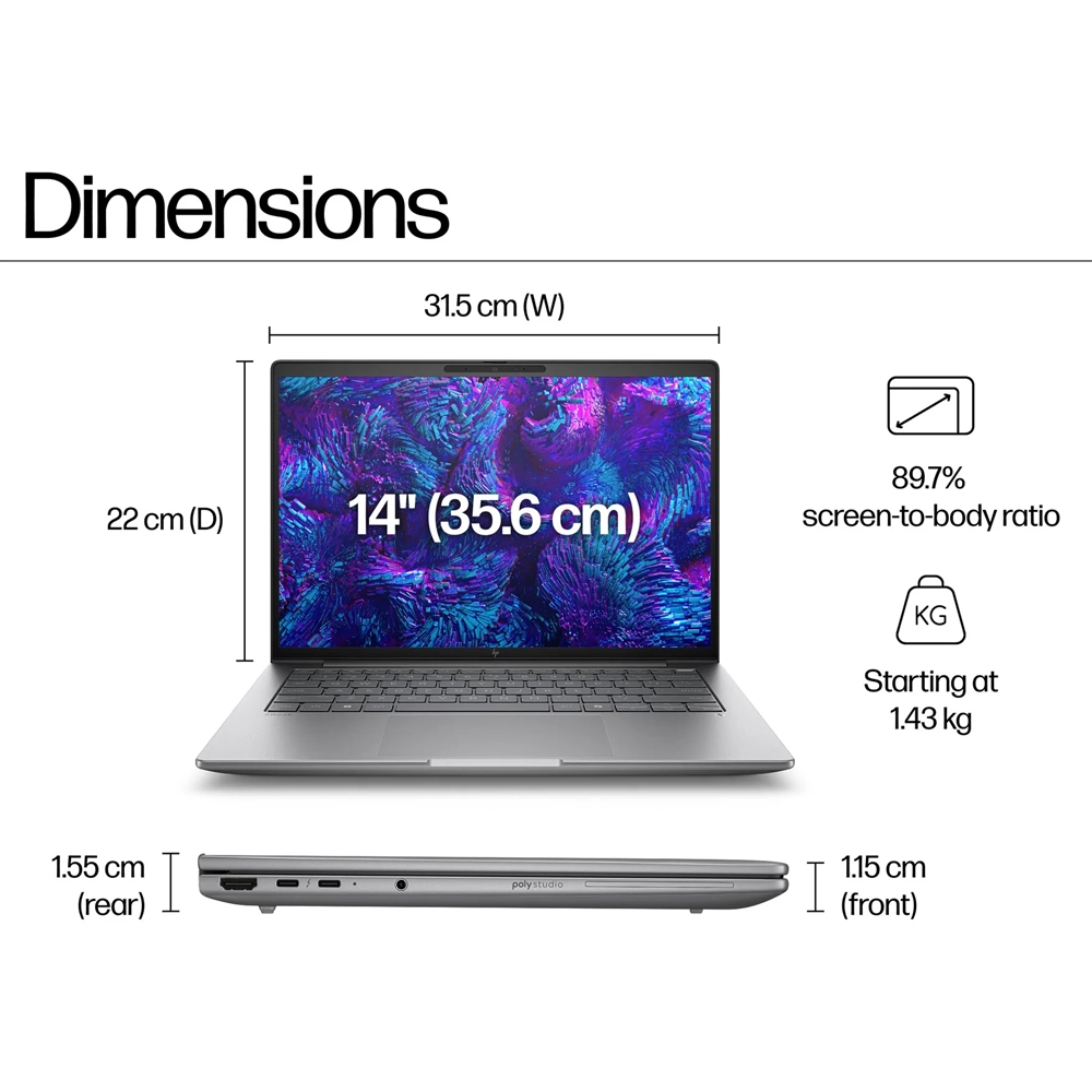 - Colaboração de Elite: Áudio afinado pela Poly Studio e câmara de 5MP com IA para videochamadas com clareza cristalina.