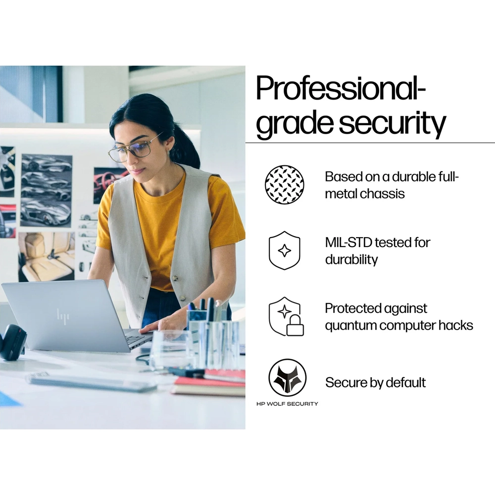 - HP Wolf Security: A segurança mais avançada do mundo, protegendo o seu hardware desde o arranque até ao uso na nuvem.