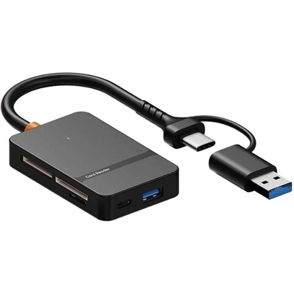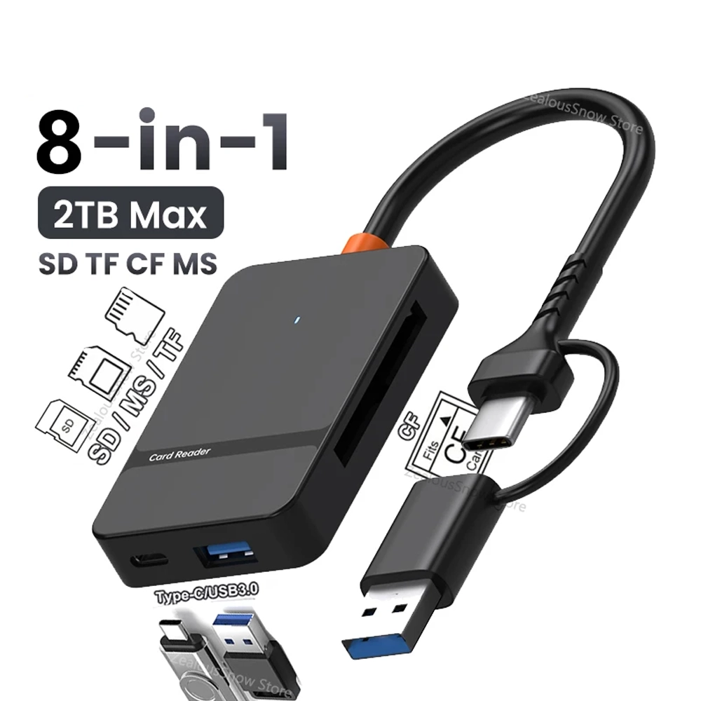 Leitor de Cartões de Memória 8-em-1 USB-C e USB-A | Suporte 2TB | SD, TF, CF, MS | USB 3.0 de Alta Velocidade 5Gbps