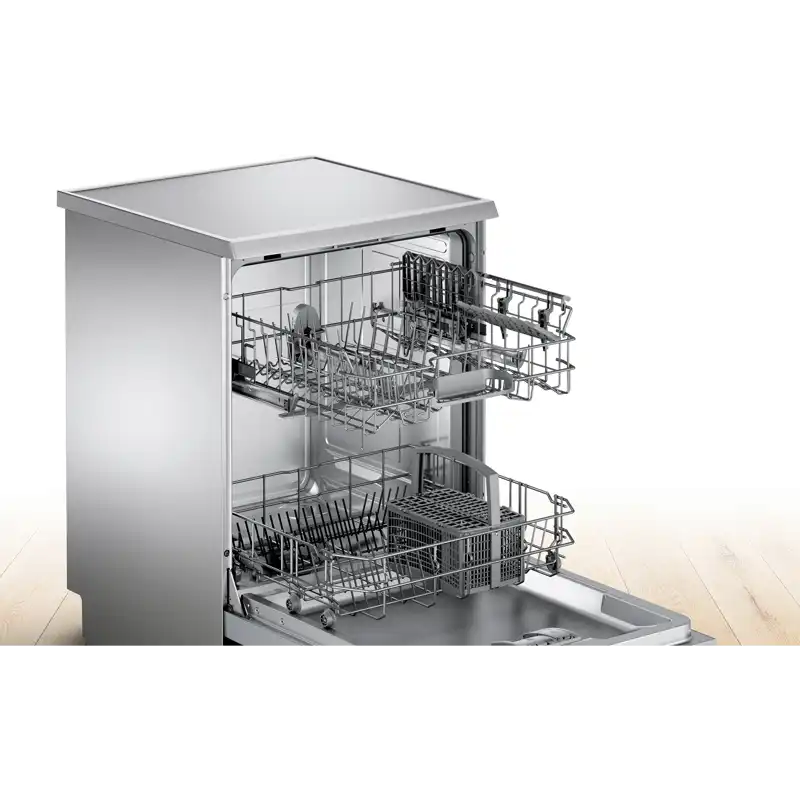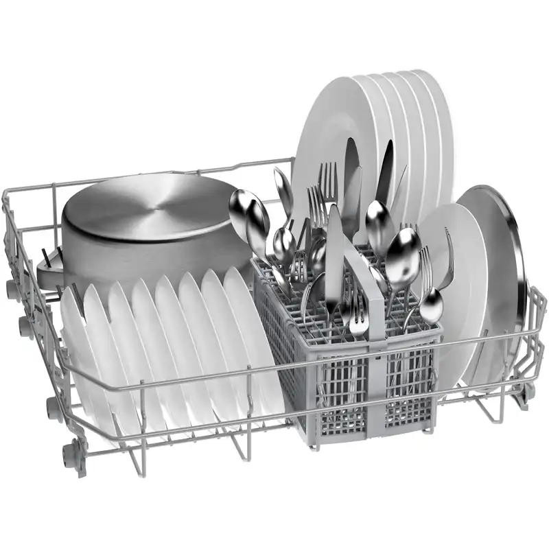 Assim, você pode facilmente colocar pratos e potes grandes no cesto inferior ou copos altos no cesto superior. Com a Rackmatic, as máquinas de lavar loiça da Bosch têm sempre espaço para tachos grandes ou copos altos.