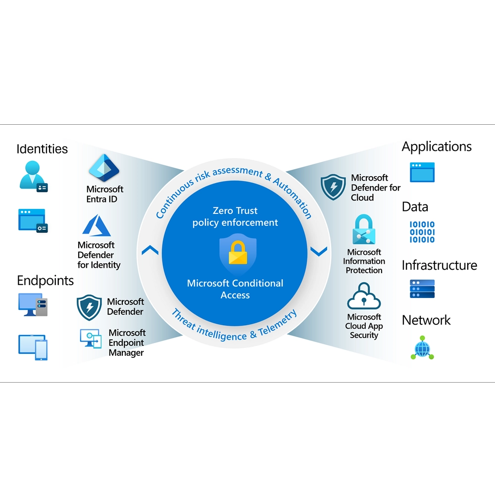 - Conditional Access Avançado: Políticas baseadas em risco para exigir MFA (Autenticação Multi-fator) apenas quando uma ameaça é detetada.