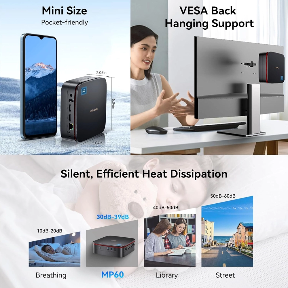 O Mini PC Blackview MP60 é um computador de secretária ultracompacto, desenhado para quem procura eficiência, baixo consumo energético e excelente valor. Equipado com o processador Intel N100 (um membro da família mais recente Alder Lake-N), 16 GB de RAM e um rápido SSD de 512 GB, este Mini PC é ideal para tarefas de escritório, navegação na web, e como um centro de multimédia ou para sinalização digital.