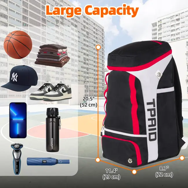 - 🏀 Mochila Multiuso de grande capacidade: mochila de basquete TPAID com compartimento para ténis e amp; compartimento de bola é perfeito para transportar equipamentos desportivos. Ventilado para manter seus ténis e equipamentos separados e secos. Tamanho: 20,5″;*11,4″;*8,7″;, capacidade: 35L; cabe na maioria dos sapatos.