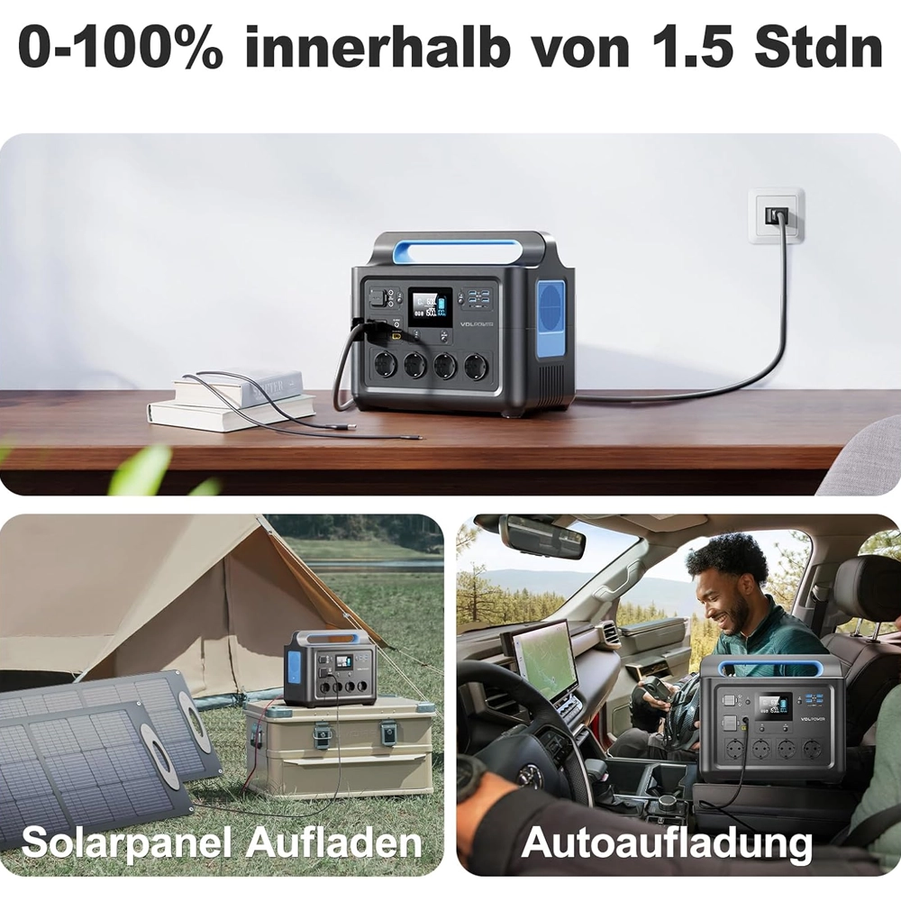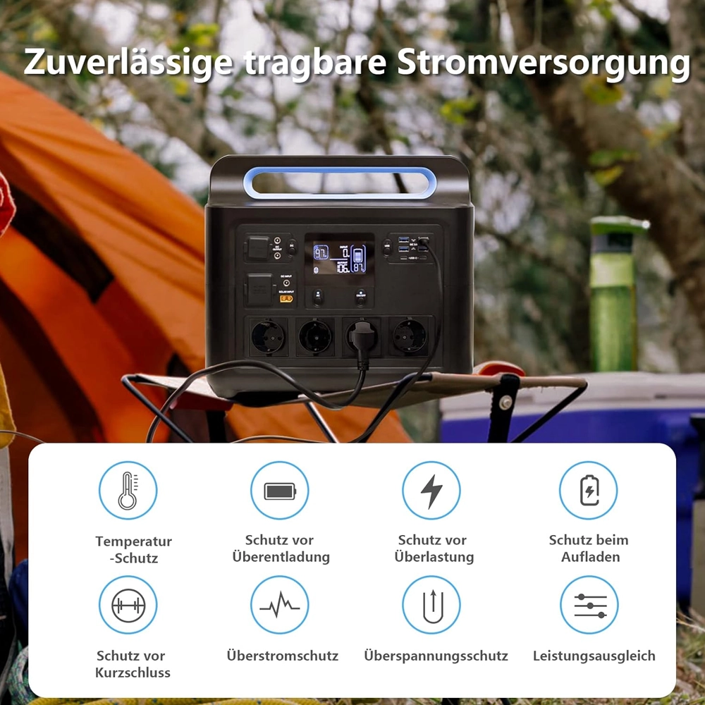 - Capacidade de 1536Wh: Armazenamento generoso para manter luzes, frigoríficos portáteis e internet ligados durante longos períodos.