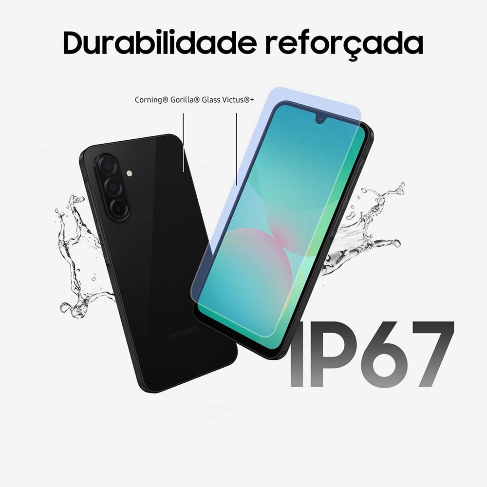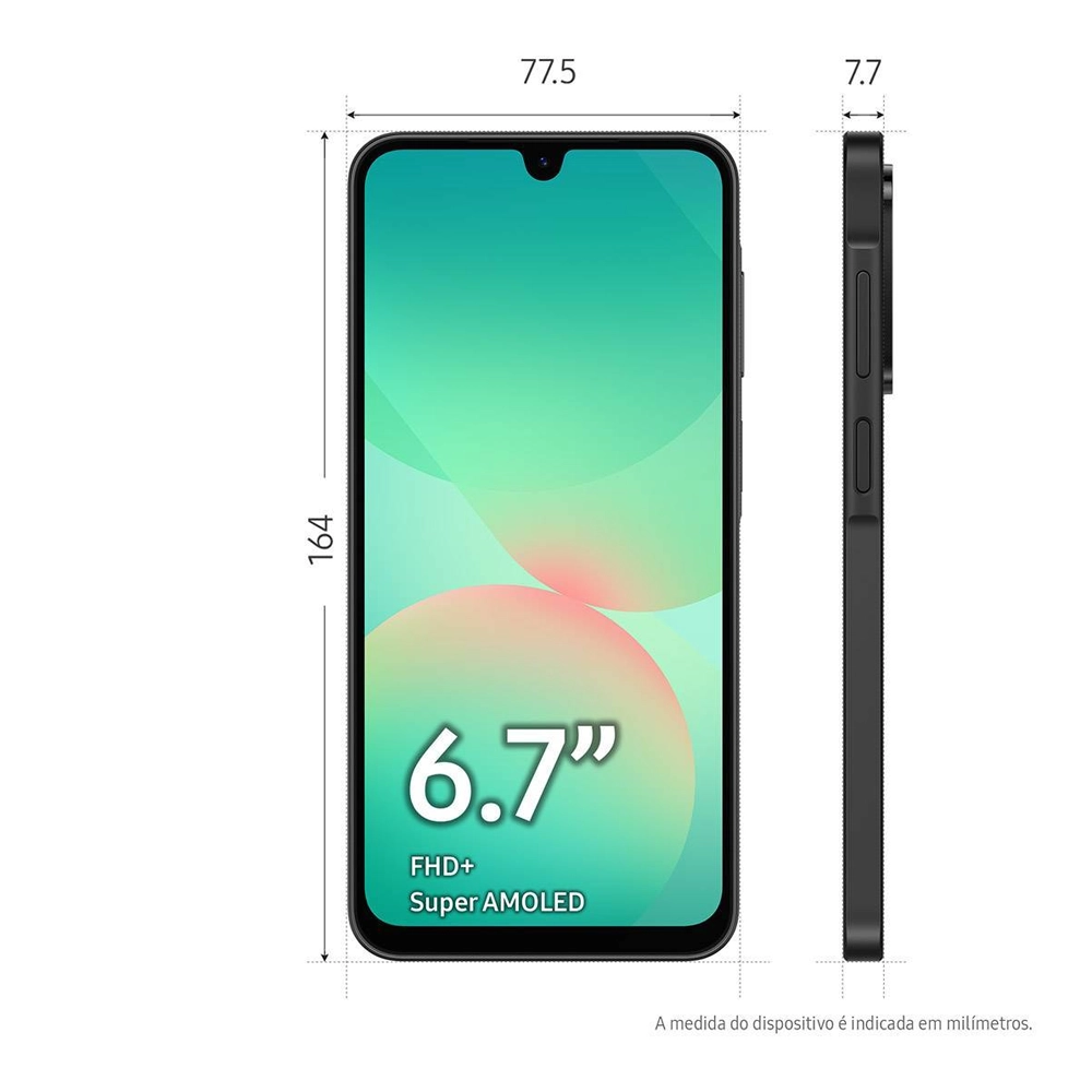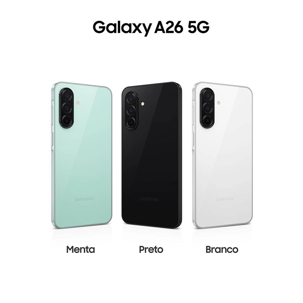 - Bateria para 2 Dias: Com 5000mAh, o Galaxy A26 foi otimizado para acompanhar o seu ritmo diário, suportando carregamento rápido de 25W.