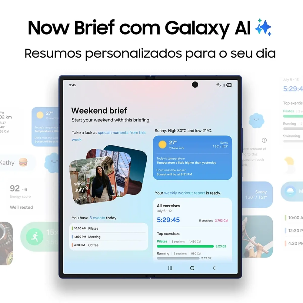 Equipado com o que será o mais recente processador de topo – o Snapdragon 8 Gen X for Galaxy (ou equivalente) – e robustos 12GB de RAM, o Z Fold7 garante que a multitarefa seja rápida e fluida. O seu armazenamento de 256GB oferece espaço suficiente para todas as suas aplicações e media. Otimizado para executar até três aplicações simultaneamente no ecrã principal (Multi Janela), ele transforma a forma como você trabalha e joga.