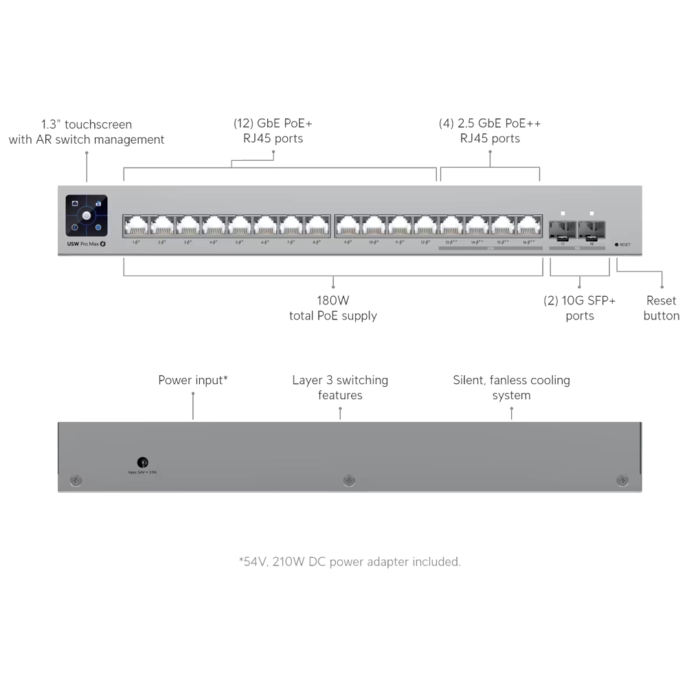 📋 Especificações Técnicas: USW-Pro-Max-16-PoE
