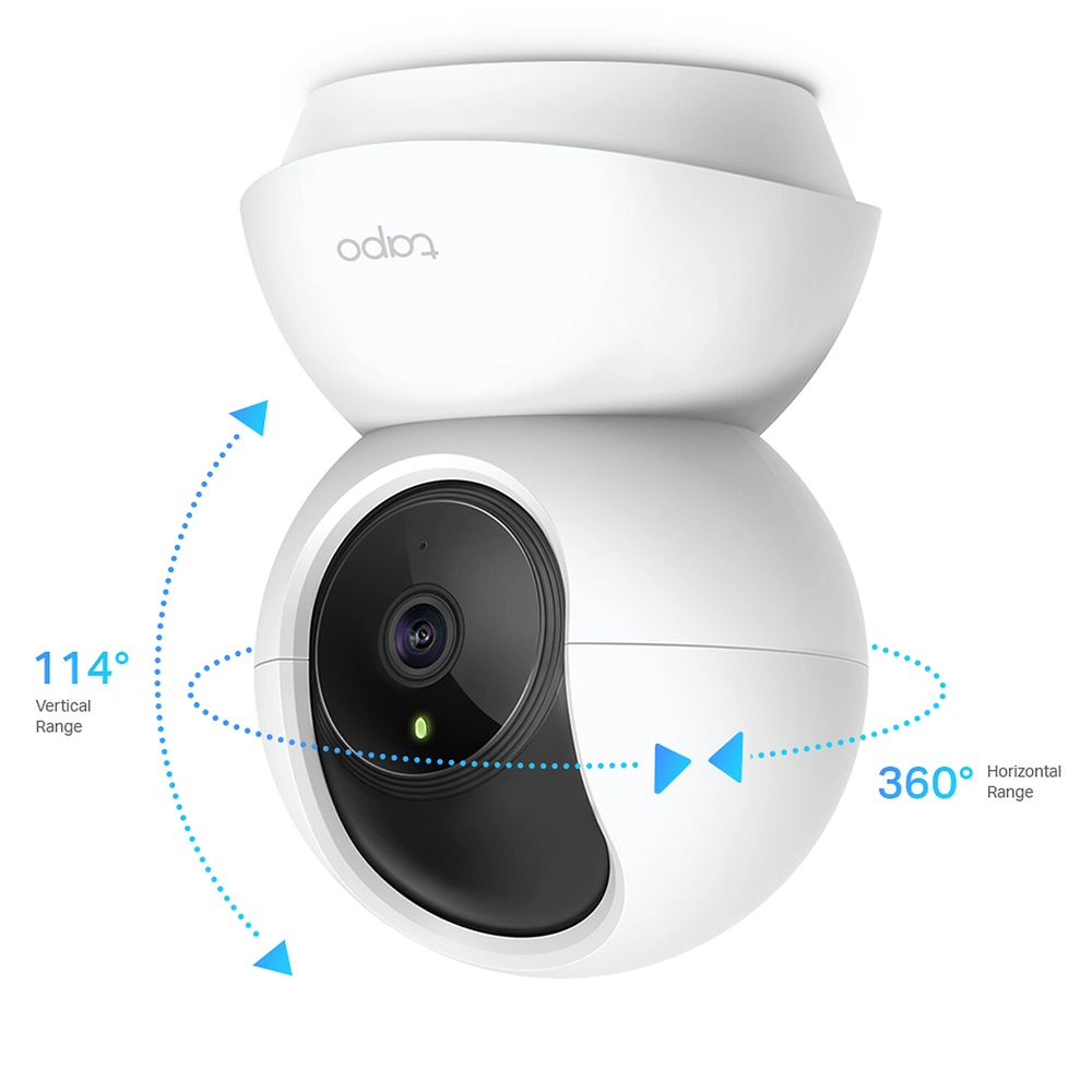 Equipado com tecnologia Pan e Tilt, a Tapo C200 proporciona cobertura total de 360° no eixo horizontal e 114° no vertical, permitindo monitorizar grandes áreas sem pontos cegos.