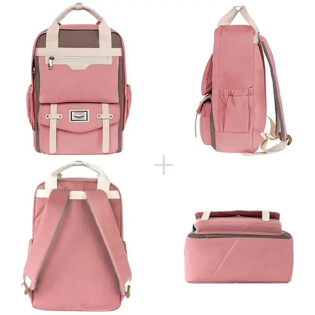 Esta mochila estética adota um formato quadrado retrô clássico. A moderna cor rosa confere a esta mochila vintage uma ótima estética.